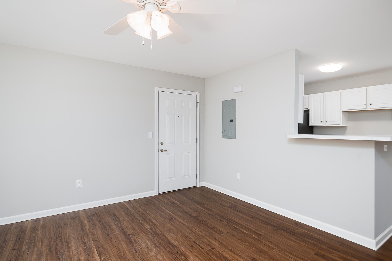 Enjoy this spacious one bedroom, one bathroom apartment with top-notch amenities. Our community is tucked away to maintain peace and quiet while also being minutes from downtown and shopping opportunities. This top floor unit features a built-in electric fireplace and vaulted ceilings in the living area, as well as an outdoor balcony with a locking storage closet. Apply today!